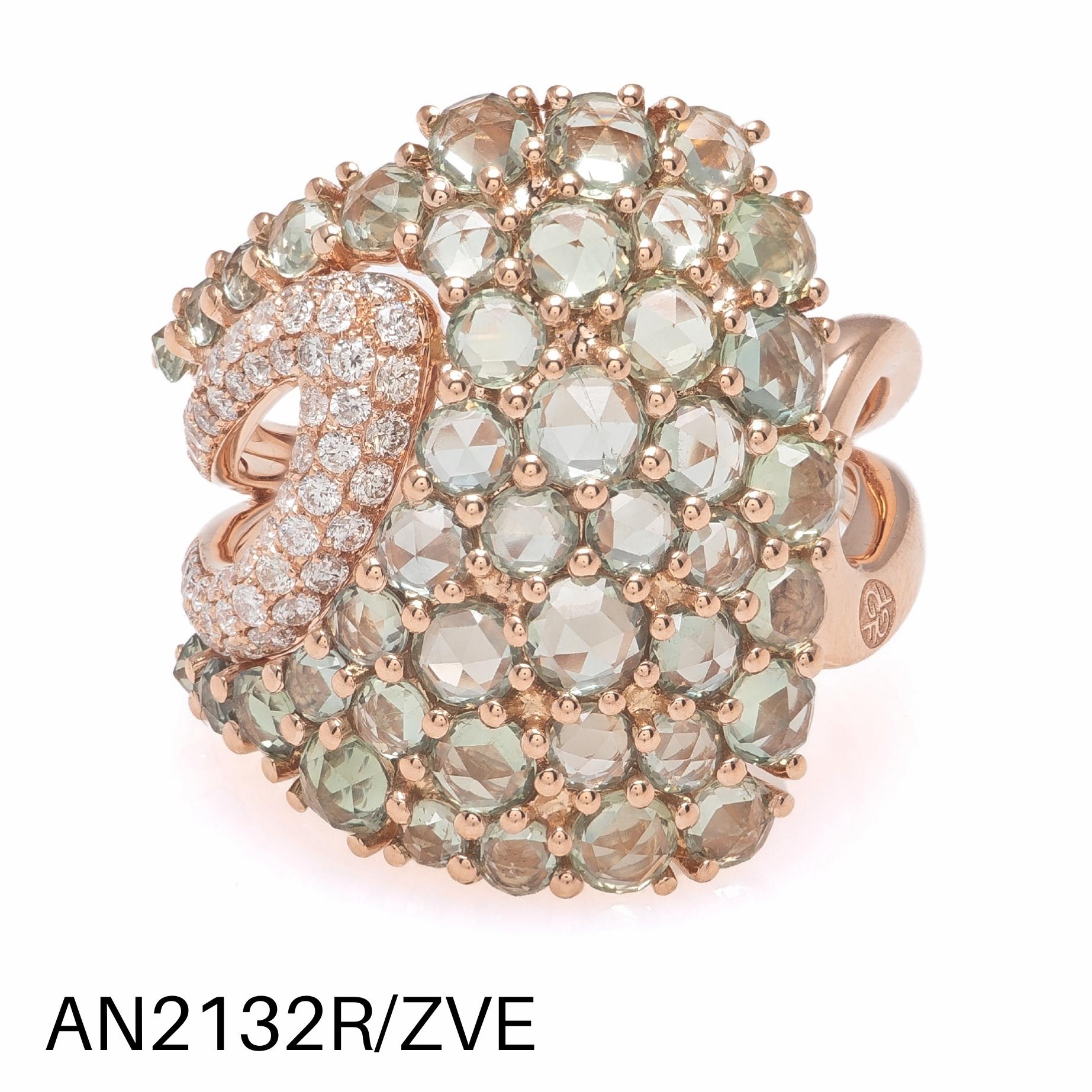 RING, ROSE GOLD, DIAMONDS, GREEN SAPPHIRES