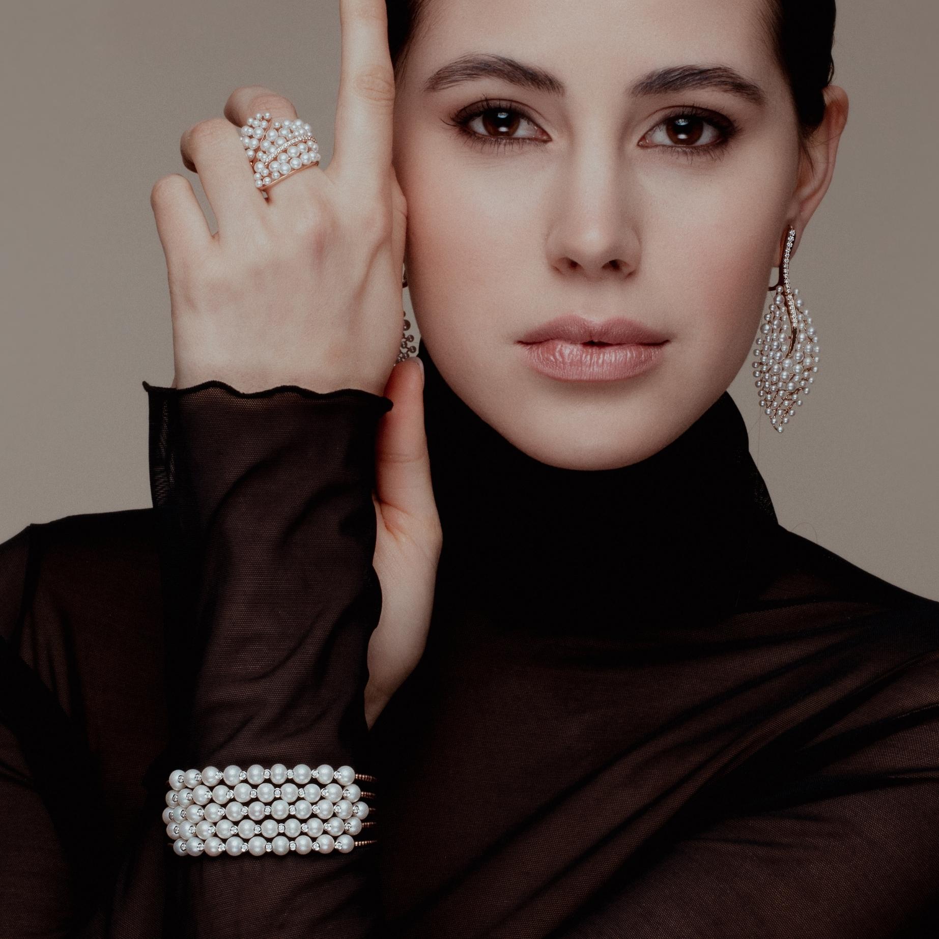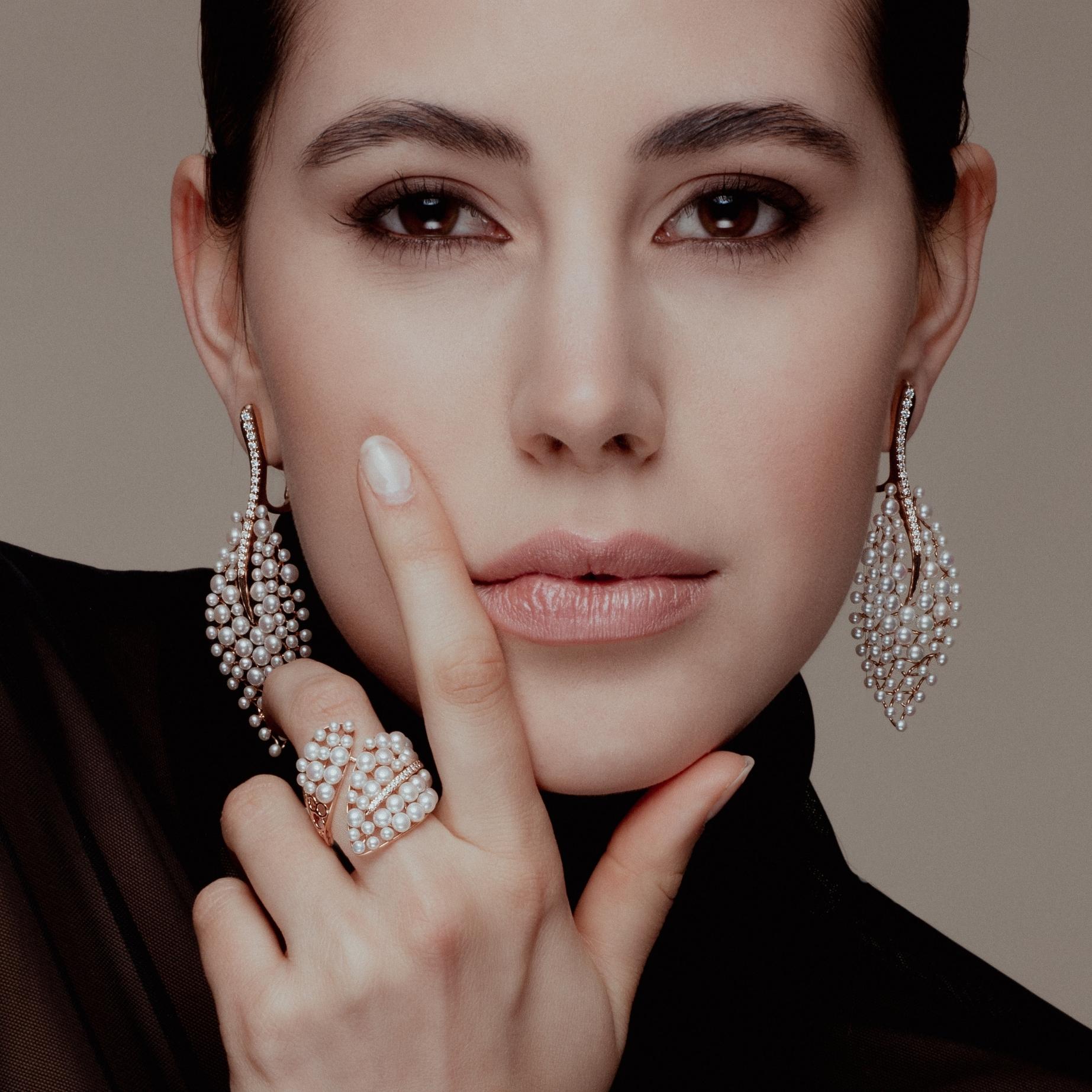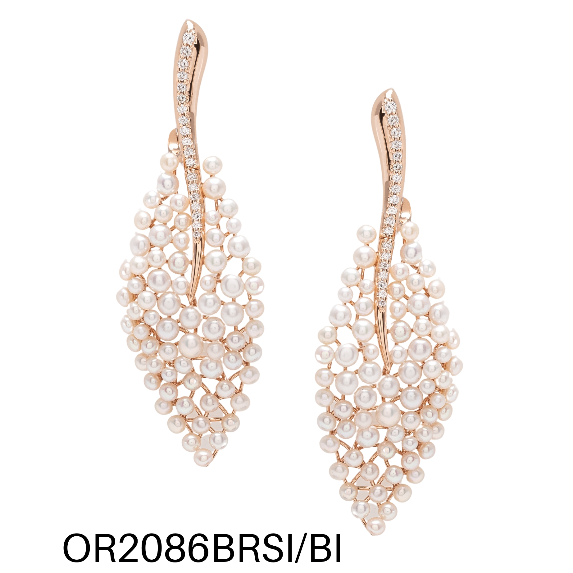 ORECCHINI ORO ROSA, DIAMANTI, PERLE BIANCHE
